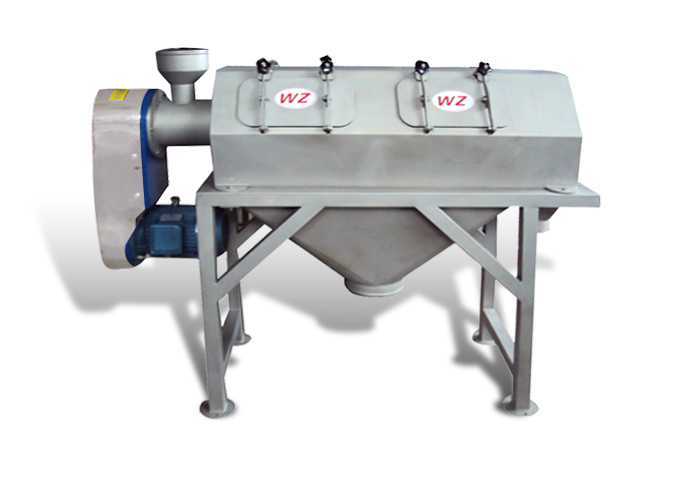 QXS臥式氣旋篩由于形狀為橫臥狀所以也叫臥式氣流篩或臥式氣流篩粉機,篩網為圓筒狀,置于機體內,物料通過螺旋輸送系統后,和氣流混合、霧化進入網筒內;通過網筒內風輪葉片使物料同時受離心力和旋風推進力,從而使物料噴射過網,由細料排出口排出,不能過網的物料沿網筒壁從粗料排出口排出。