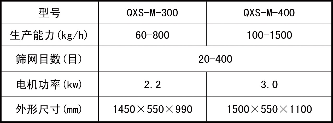 ?QXS-M密閉型氣旋篩技術參數:
